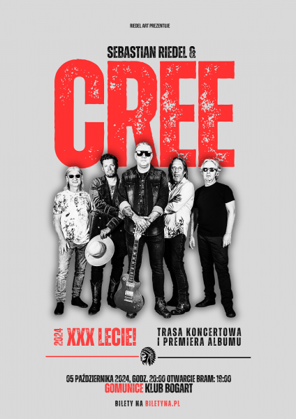 festiwalach – od bluesowych, przez rockowe, aż po zwycięskie Top Trendy. Na koncie ma blisko dziesięć doskonale przyjętych albumów. Jesienią tego roku ukaże się kolejny krążek, świeży i premierowy, ale nie różniący się stylistycznie od tego za co zespół jest tak ceniony. Bo jedno jest pewne – nikt w tym kraju nie gra w tych gatunkach tak rasowo, jak robią to Sebastian Riedel & Cree.